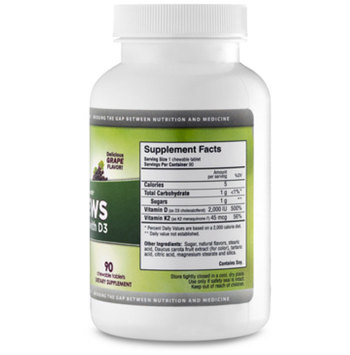 K2 Chews with D3, a great tasting chewable for those who have difficulty swallowing pills, helps support healthy arteries and optimal bone health. Vitamin D3 helps to increase calcium absorption, while Vitamin K2 aids in redirecting calcium deposits out of the arteries and depositing them in the bones- where they belong.