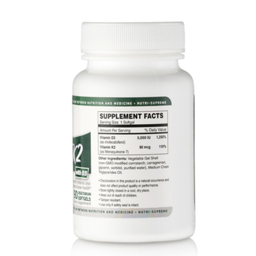 K2 D3 helps support healthy arteries and optimal bone health. Vitamin D3 helps to increase calcium absorption, while Vitamin K2 aids in redirecting calcium deposits out of the arteries and depositing them in the bones where they belong.