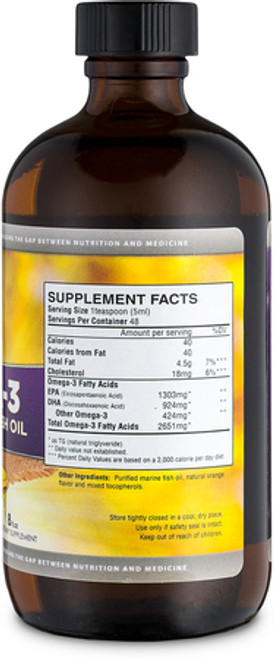 Omega-3 Premium 8 oz. liquid fish oil is our strongest fish oil formula in a liquid. Concentrated amounts of EPA/DHA are beneficial for mental, cardiovascular and immune health. Available in delicious natural orange flavor.