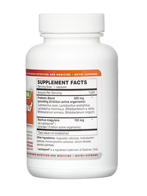 Ultra Probiotic Blend with Acidophilus plus 6 other strains (providing 20 billion active organisms) is the ideal product to support digestive and immune health. It supplies six strains of healthy bacteria in just one capsule, providing 20 billion active organisms including L. sporogenes, which better survives stomach acid. This blend is great for those who recently took large doses of antibiotics or who suffer from ongoing digestive issues.